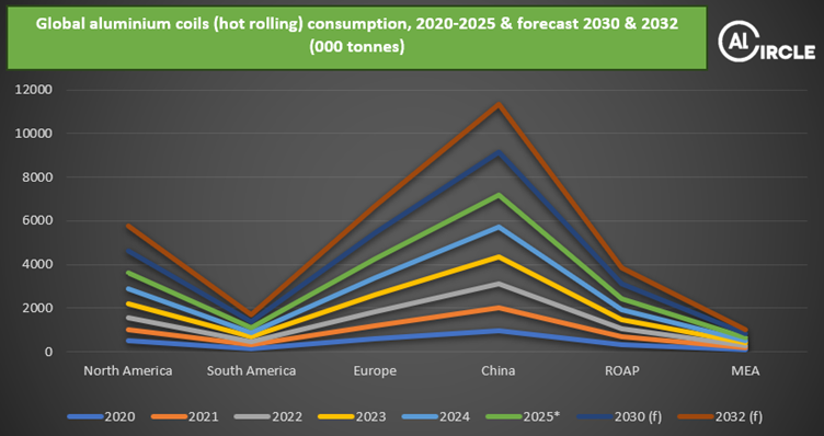 The global consumption of hot-rolled aluminium coils has been expanding steadily over the past decade, mirroring a wider industrial shift toward eco-efficient materials. The Asia-Pacific region, especially China, dominates consumption, driven by massive infrastructure investment, electric vehicle manufacturing and rapid urbanisation.