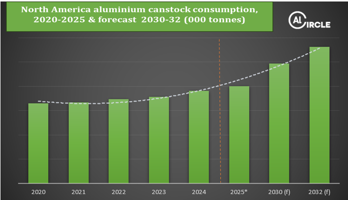 The North American aluminium canstock market is popping open to exciting new opportunities and the numbers tell the story. According to recent market data analysis, canstock consumption has surged from 1.5 million tonnes in 2020 to an estimated nearly 2 million tonnes in 2025, with forecasts predicting it will soar to more than 2.40 million tonnes by 2030 and more than 2.70 million tonnes by 2032. That’s a growth curve as dynamic as the beverage industry it fuels.