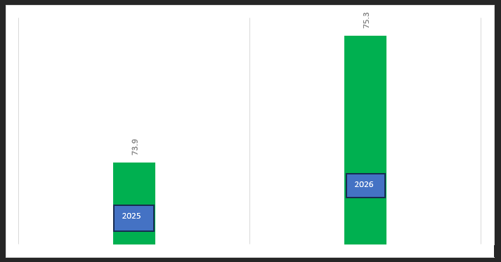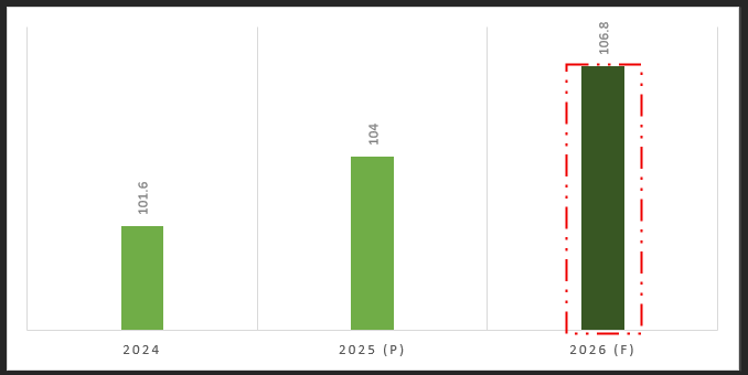 Global primary aluminium production & forecast, 2025-2026 (f) (in million tonnes)